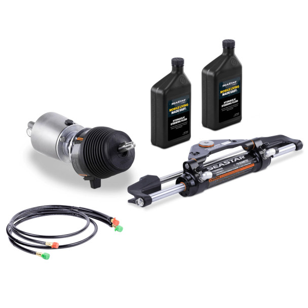 The Dometic Seastar HK6400TS4 provides unmatched steering comfort and control. This kit includes a helm, cylinder and 2 quarts of steering fluid, as well as a pair of SeaStar Steering Hose – on us!